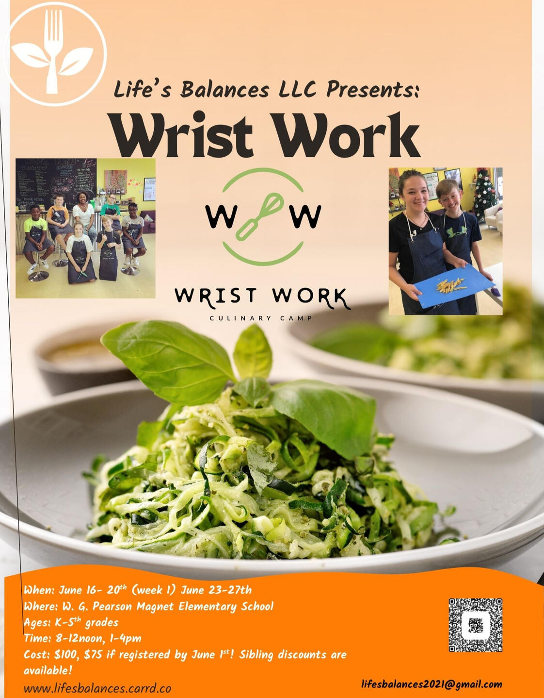 Our Wrist Work Culinary Camp is a hands-on experience where students will learn basic cooking skills, kitchen safety, nutrition, and teamwork โ all while preparing delicious meals and snacks. This camp is perfect for young chefs of all experience levels who want to build confidence in the kitchen and develop lifelong skills.